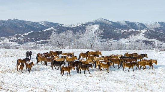 牧民們趕著馬群